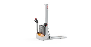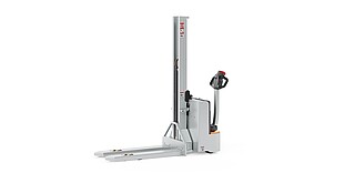 Are you looking for a starter truck in the world of pallet stackers? Allow us to introduce the ECV 10C, our most compact high lift pallet truck which can master applications in the narrowest working areas with ease. The mono mast provides the best possible view of the fork tips so the operator can position them accurately into the pallet. The compact ECV 10C is also equipped with automatic lift-height-dependent speed reduction for maximum transport safety. With a mono mast and a maximum lifting capacity of up to 1,000 kg it can be used for a wide range of applications. Whether being used for stacking applications up to 1,867 mm or to provide ergonomic support as a mobile workbench, the ECV 10C is an all-rounder. The easy-grip tiller for left- and righthanded operators enables precise operation of all of the driving and lifting functions. The ECV 10C also performs well in terms of availability because it always has the necessary amount of power thanks to its built-in charger. The battery can be recharged conveniently and simply at any standard socket. The ECV 10iC version of the compact high lift pallet truck is optionally available with initial lift function for easy negotiation of thresholds, uneven surfaces and ramps.
